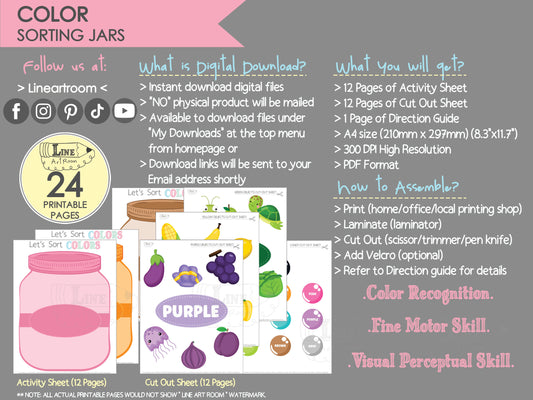 Learning Colors with Color Jars Sorting Mat Activity for Kids